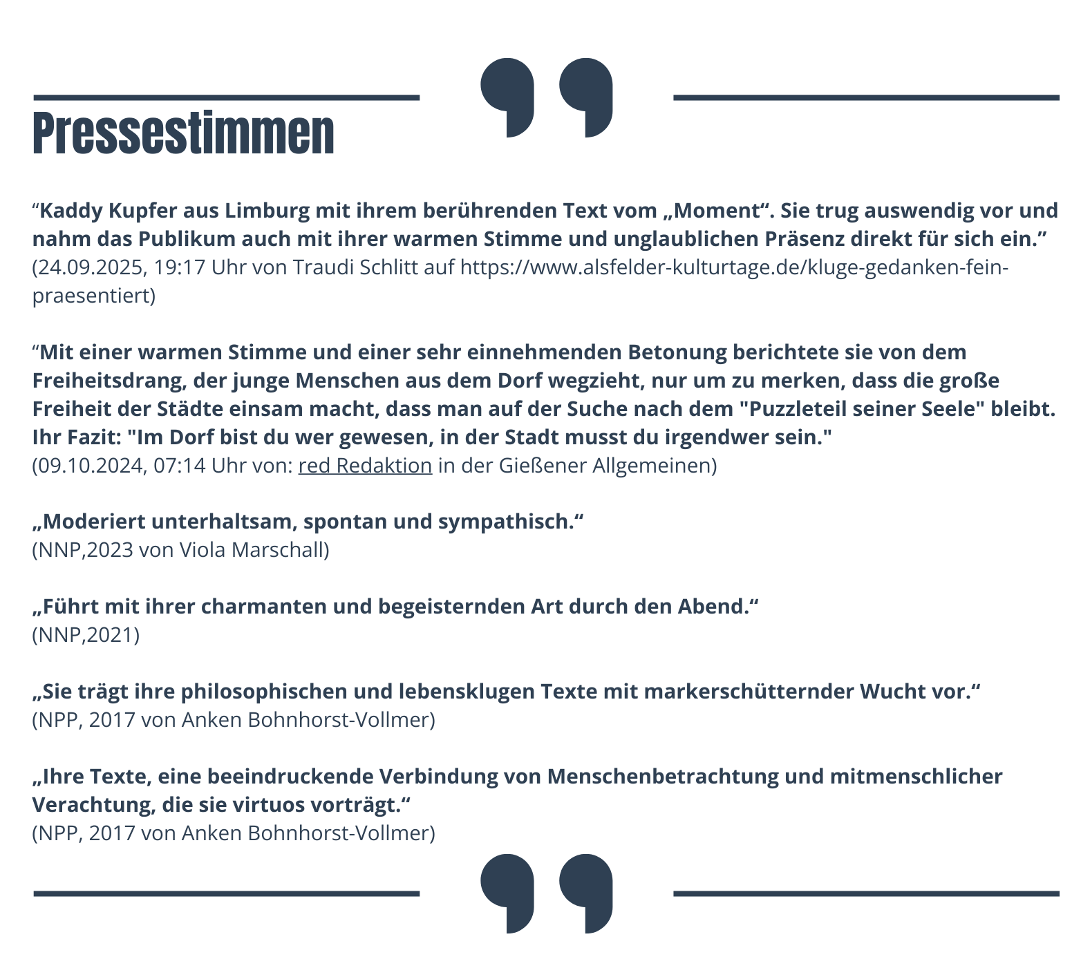 Poetin, Moderatorin, Sprecherin und Autorin.
